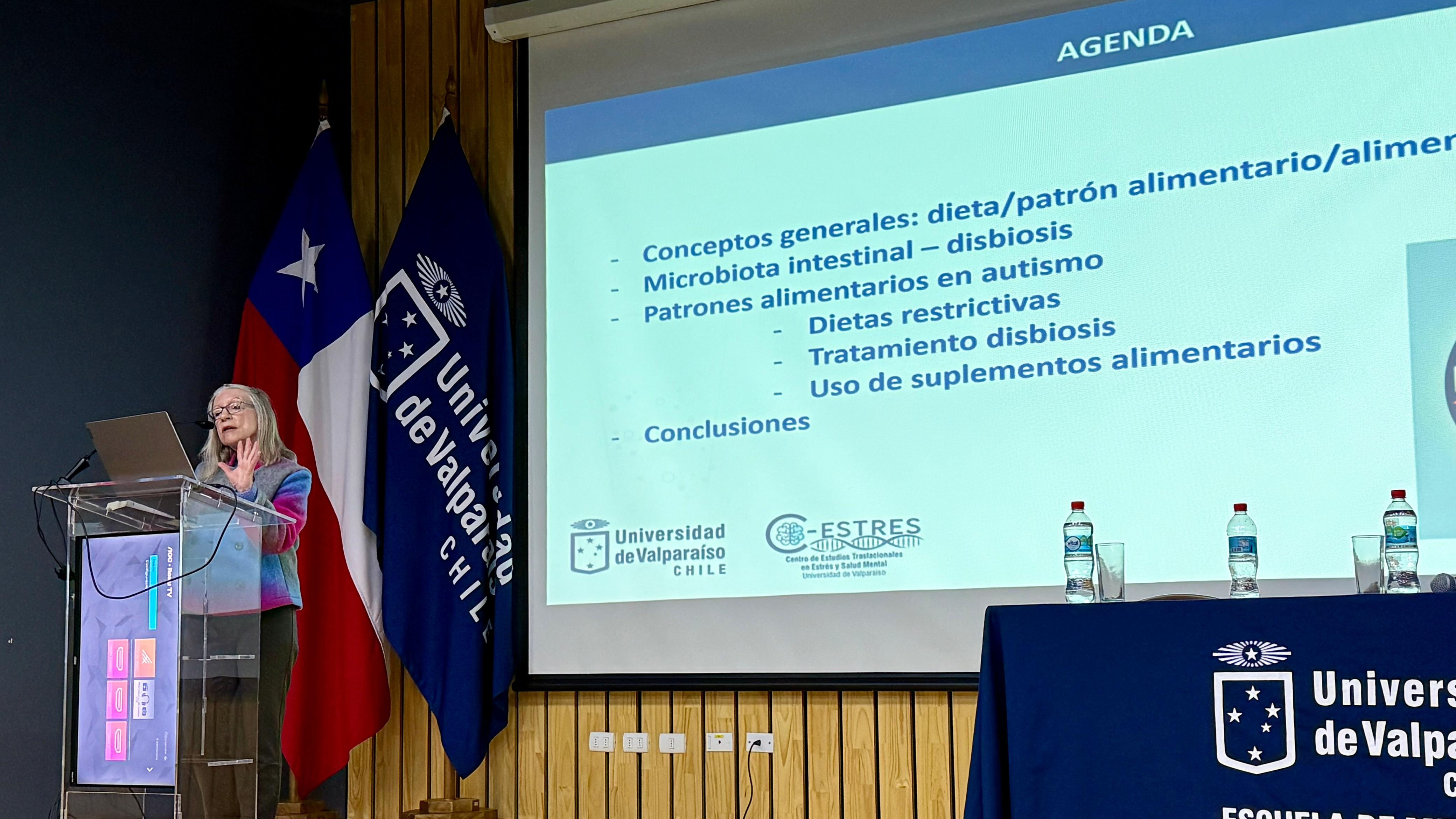 En la ocasión, participaron como ponentes dos investigadoras vinculadas a C-ESTRES. La Dra. María Leonor Bustamante, del Programa de Genética Humana de la Universidad de Chile, presentó la ponencia “La genética del TDAH abre puertas al estudio de la conducta humana”. Por su parte, la Dra. Mariante Lutz, del Departamento de Salud Pública de la UV, expuso sobre “Patrones alimentarios en autismo”, abordando aspectos relevantes de la neurodiversidad desde una perspectiva interdisciplinaria.