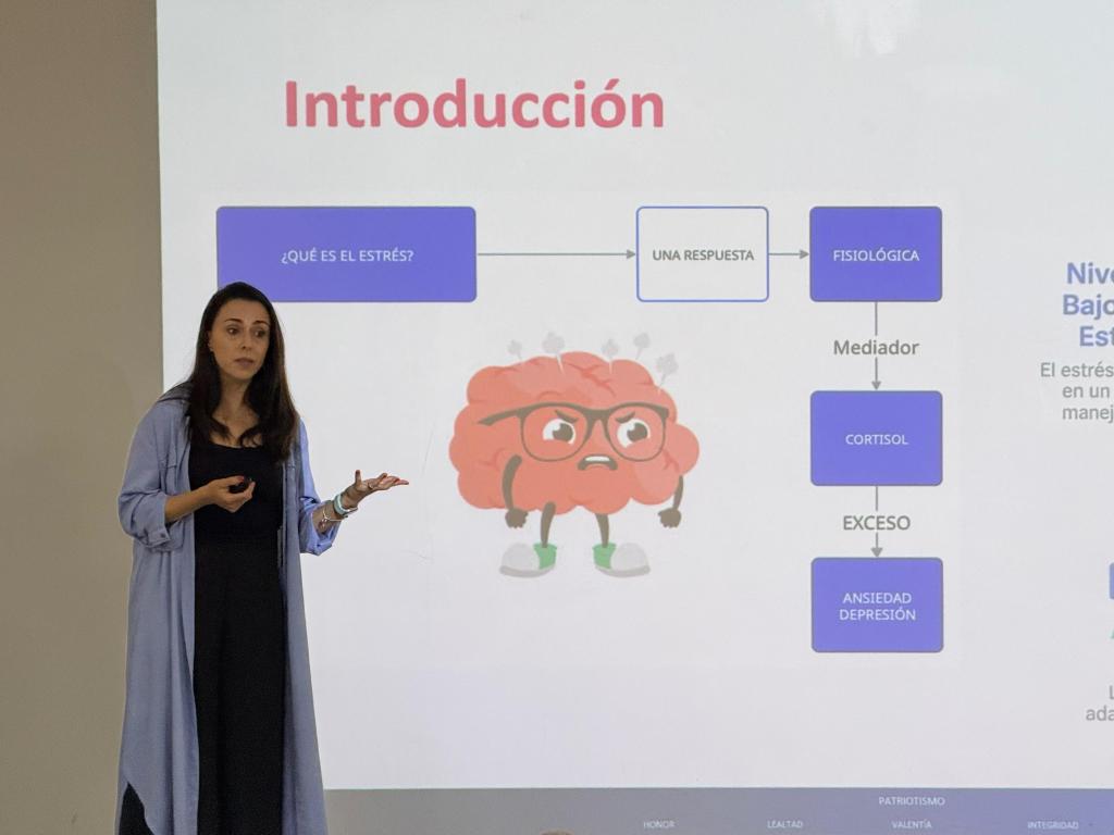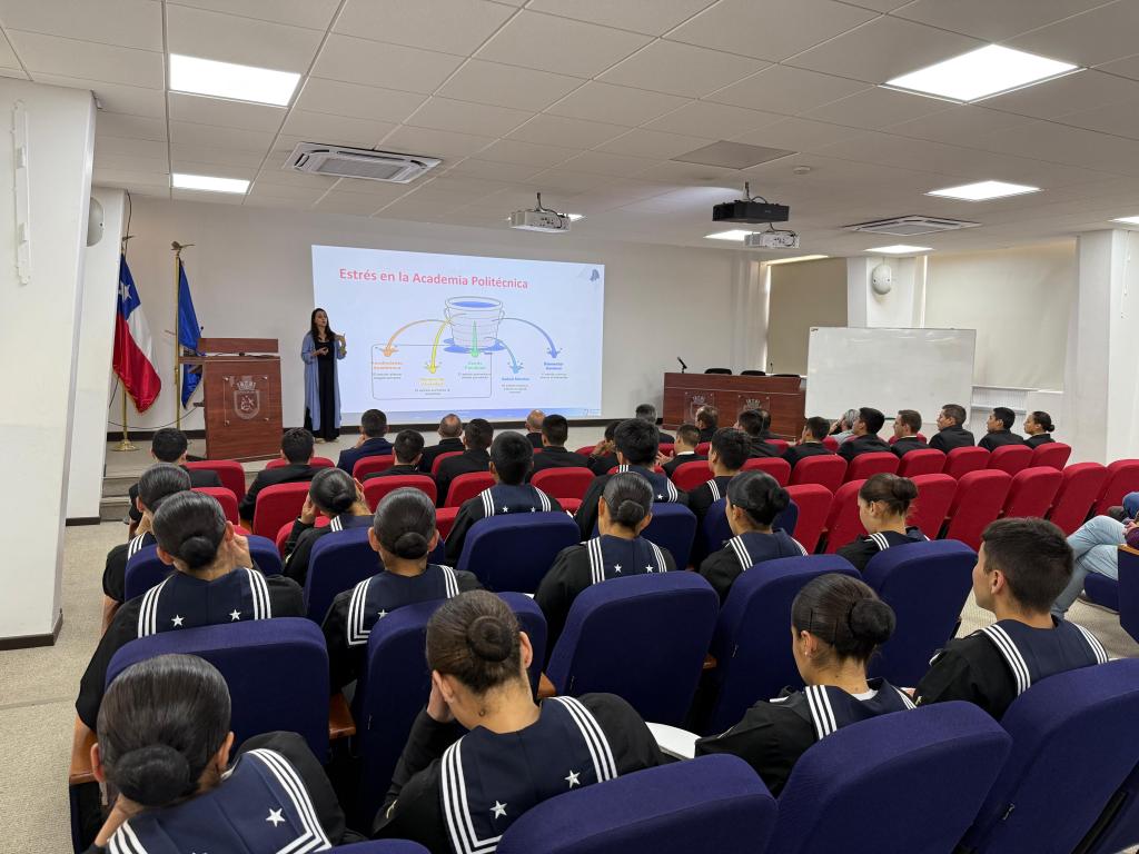 La investigadora destacó la importancia de abordar el bienestar psicológico en contextos de formación de alta exigencia, señalando que “el manejo adecuado del estrés no solo influye en la salud mental, sino también en la capacidad de aprendizaje y desempeño de los futuros profesionales navales”.