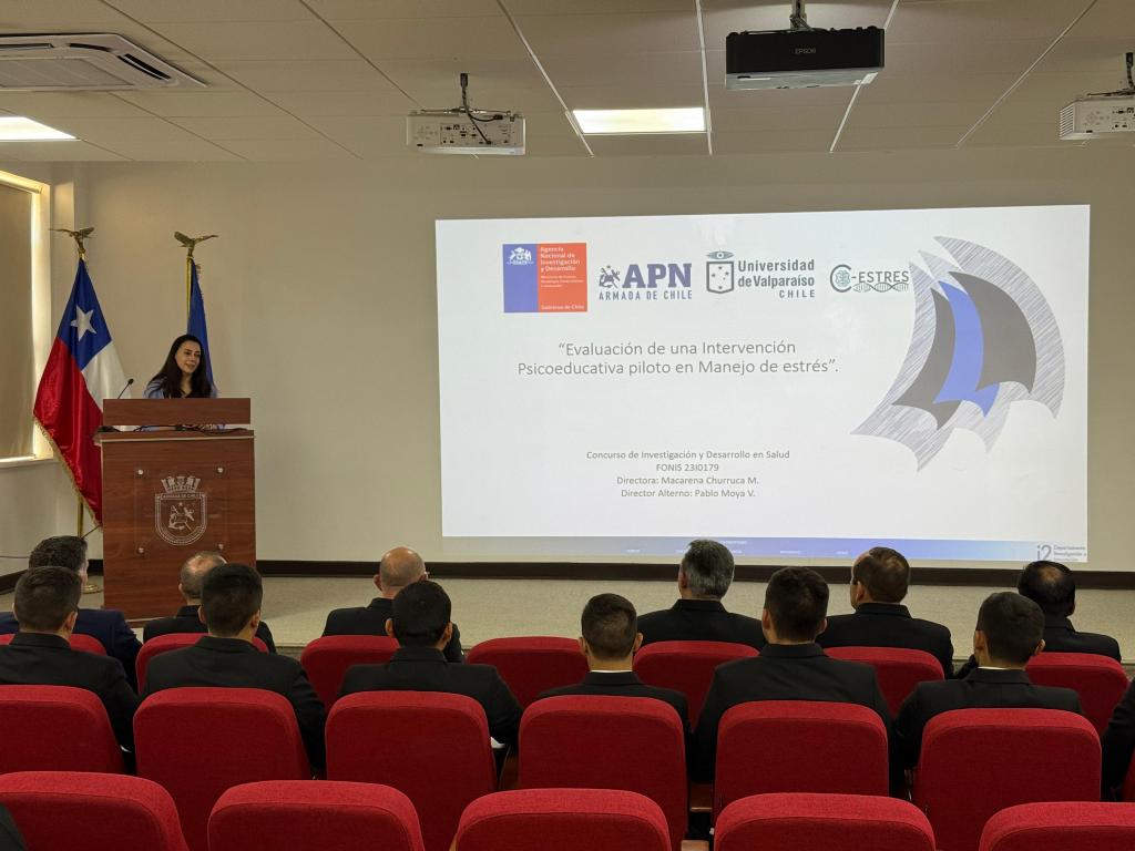 Durante la jornada de hoy, la investigadora Macarena Churruca, del Centro de Estudios sobre estrés y salud mental, participó en el Seminario de Estrés y Rendimiento Naval: De la Guía a la Práctica, organizado por la Academia Politécnica Naval. La actividad se enmarca en el proyecto FONIS SA2310179: “Evaluación de la efectividad de una intervención psicoeducativa en el manejo del estrés sobre niveles de cortisol, ansiedad y rendimiento académico en alumnos de la Academia Politécnica Naval”.